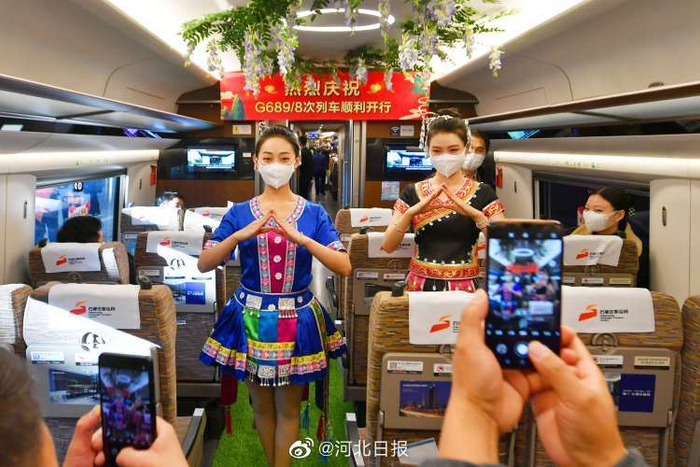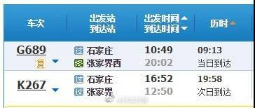 【#石家庄开通到张家界高铁#】张吉怀高铁正式开通运营!今天上午9时27分,由北京局集团公司石家庄客运段担当的G689次列车从北京西站始发,途经张吉怀高铁运行,终点站是张家界西站。被誉为“神仙颜值”的张吉怀高铁开通,将沿线的湘西土家族苗族自治州正式融入国家铁路网,也使石家庄到张家界的铁路运行时间从现在的20小时左右缩短至9小时13分。你准备打卡“湘西最美高铁”了吗?[河北日报记者赵红][编辑|王伟]