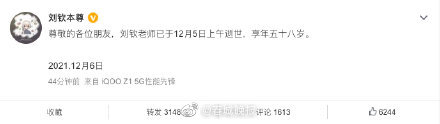 【配音演员#刘钦去世# ,曾为蝙蝠侠、功夫熊猫、盗梦空间等配音】12月6日,据@刘钦本尊 消息,知名配音演员刘钦已于12月5日上午逝世,享年58岁。 据悉,刘钦,代表作品为《蝙蝠侠:黑暗骑士崛起》、《冰川时代4》艾迪、《超级战舰》卡尔、《重返17岁》奈德(托马斯·列农 饰)、《穿普拉达的女王》服装设计师奈杰尔,也曾为《我为歌狂》、《变形金刚》、《狮子王》、《功夫熊猫》、《秦时明月》等大量动漫作品配音。