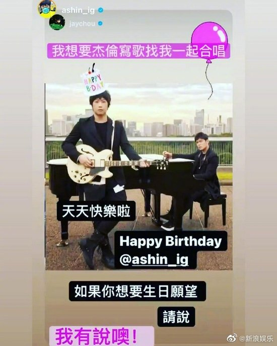 #阿信想要周杰伦写歌找他一起唱# 12月6日是五月天@阿信 生日,他发文表示“不要祝我生日快乐”,更希望“老妈早日康复”、“师弟师妹实现理想”、“疫情平息”,“我只想要身边的人都健康平安,不在我身边的你,也要”。周杰伦晒出二人合照问其生日愿望,阿信回复:“我想要杰伦写歌找我一起唱。”