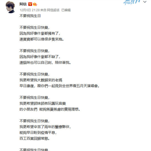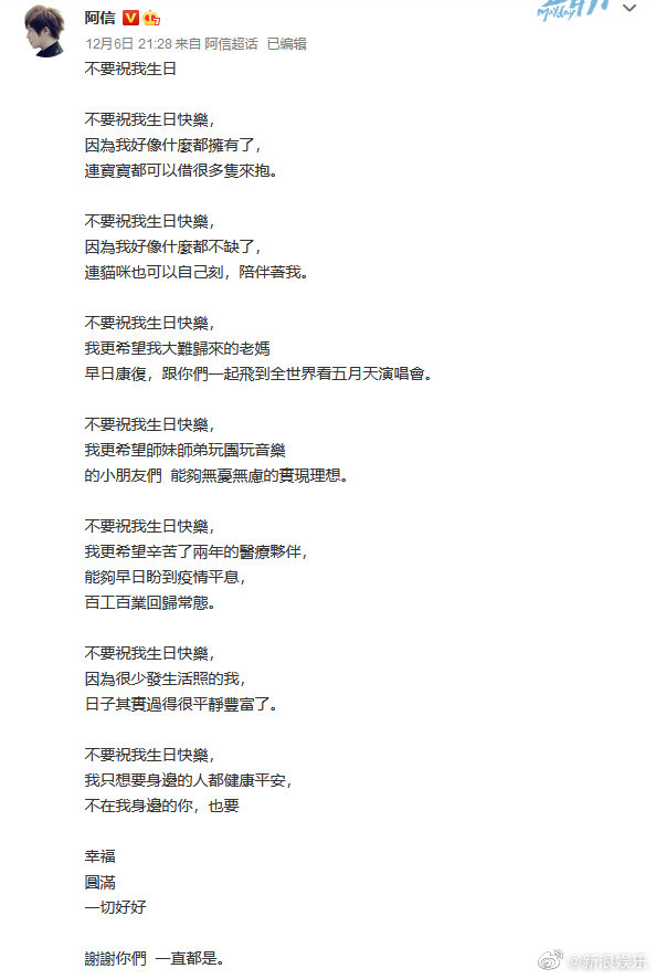 12月6日是五月天@阿信 生日,他发文表示“不要祝我生日快乐”……
