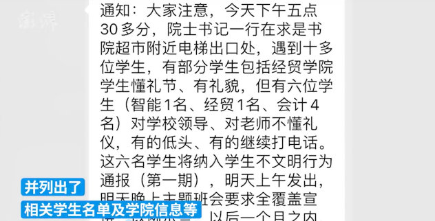 #红星评论#【未向领导问好被通报批评,这种方式很“不文明”】近日,湖南工商大学多名学生因未向校领导、老师问好被学校相关部门通报为不文明行为引发网络热议。该校通报了多位学生如下的“不文明行为”:12月3日,有六位学生对学校领导、对老师不懂礼仪,有的低头、有的继续打电话。12月4日,有一位学生见到其他同学主动与老师问候的情况下仍不与老师打招呼。 对于这些学生的“不文明的行为”,学校“动了真格”。不仅要求主题班会全覆盖宣讲,以例示警,并做了后续要求:第一次通报批评,教育引导;多次出现,屡教不改,将给予严肃处分。相关职能部门和相关学院也将追责。并将文明素养教育作为各学院KPI考核中的重要指标和观测点。 湖南工商大学宣传部相关工作人员表示,该校文明素养教育工作已经开展了一个月左右,学校高度重视这项工作。 显然,7位被通报批评的学生,是“撞到了枪口上”,在这场严抓文明素养教育工作中被“立了典型”,成为学校以儆效尤的“反面教材”。 对于这一系列举措,不少网友觉得做得“有些过”,而且未免会“矫枉过正”。在引发争议后,学校回应称此事存在误解,“把文明素养教育里建立良好的师生关系误解为领导、老师和学生的对立”,后续将对工作方向进行调整。这番回应颇有些让人摸不着头脑,难道是“婉转”地承认了这番举措的失当之处,又不好直接表示? 仔细看学校通报的学生“不文明行为”,不过是“见面打招呼”的范畴。因为学生没有及时向“院士书记一行”见面“行礼”,就将如此细微的“小节”抓住,“上纲上线”通报批评,做得着实有些过。 而如果仔细去论证,那7位学生的行为,谁能保证他们没被“冤枉”?谁规定见了领导一定要打招呼?万一打了招呼没被看到呢?学生如果不打招呼就被通报批评,这到底是敦促文明言行还是觉得领导面子“挂不住”呢? 高校文明校园建设当然应该推进,去年6月教育部办公厅也印发了《全国高校文明校园测评细则》,但是统观全文,也没有将“在校园中不跟领导、老师打招呼”被定性为不文明行为的条款。 话说回来,真正的文明素养教育,绝非靠强制性的条例来倒逼推行,而需要久久为功地引导,需要自上而下的身行示范,需要整体氛围潜移默化地熏染。真正文明素养的提升,是一种内在修养的提升,是灵魂的升华,也绝非仅仅是表面上“跟师长、领导打招呼”就能彰显而出的。 以行政权力强行要求学生文明“守礼”,以“官威”来倒逼学生素养提升,这种行为本身就是一种“不文明”。真正体现一个大学文明素养的绝对是对学生包容式的引导,而非上纲上线的惩戒。湖南工商大学称,“学校的文明素养工作正在探索过程中,如何用更有效的方式进行,后续还将进行调整”,希望这场不大不小的“文明风波”,也能给该校文明校园建设的推行者提个醒,好好思考怎样的文明素养教育才是真正“文明”的方式。