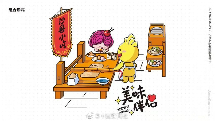 【#沙县小吃主题卡通形象#萌萌哒 有你爱吃的吗?】#沙县小吃也有卡通形象了#12月7日晚,“沙县小吃”主题卡通形象正式发布。当日,2021年沙县小吃旅游文化节开幕式在福建省三明市沙县举行。沙县小吃始于汉晋,已有1600多年历史,至今保留着古老汉族传统饮食特点。2021年,沙县小吃制作技艺入选国务院公布第五批国家级非物质文化遗产代表性项目名录。(沙县区融媒体中心 供稿)