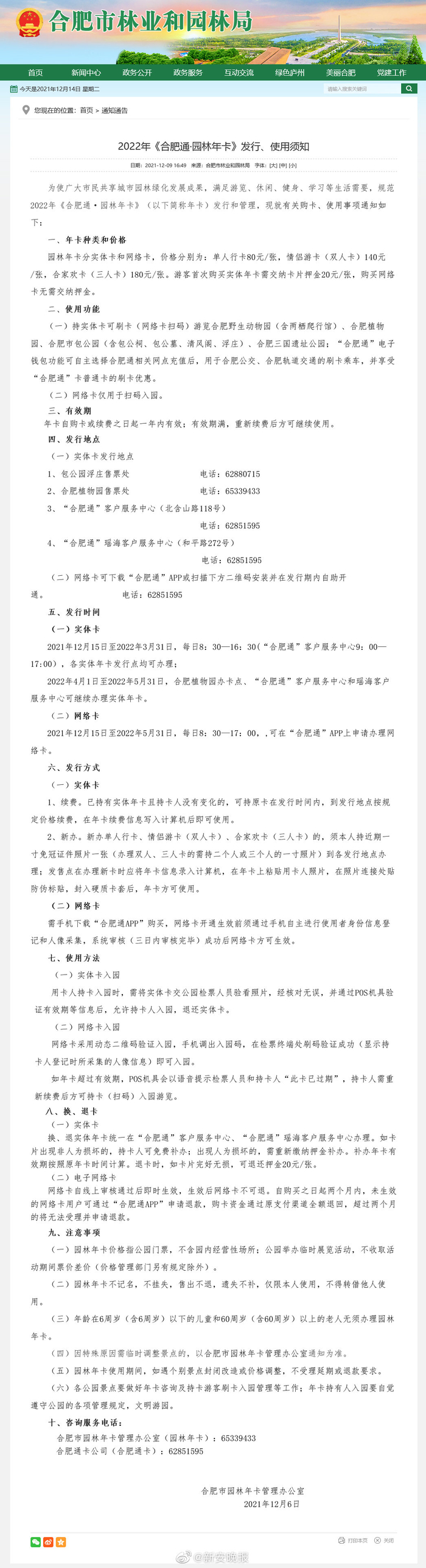 【#2022合肥园林年卡开始发行#:持卡游多景区公园 单人行卡仅80元】2022年《合肥通·园林年卡》12月15日开始办理,园林年卡分实体卡和网络卡,持实体卡可刷卡入园,网络卡通过扫码入园。价格分别为单人行卡80元/张,情侣游卡(双人卡)140元/张,合家欢卡(三人卡)180元/张。。购买年卡可前往合肥市区多个景区公园,游览合肥野生动物园(含两栖爬行馆)、合肥植物园、合肥市包公园(含包公祠、包公墓、清风阁、浮庄)、合肥三国遗址公园。