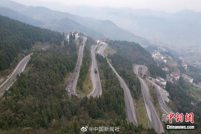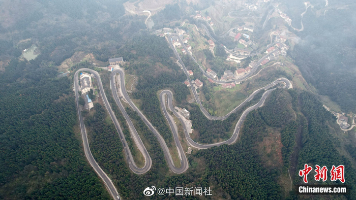 【盘旋曲折似绸缎!贵州盘山公路12千米有72道弯】贵州省遵义市桐梓县有一段盘山公路,名为“七十二道拐”,12公里有连续72个大小弯道,属于国道210线的一部分,最高处海拔1450米,最低处海拔约800米,盘旋曲折似绸缎,是全国有名的“魔鬼路段”。弯弯曲曲的盘山公路,一拐接一拐,有些180度的连续急弯直让新手司机招架不住。如今的“七十二道拐”已成为旅游观光点,助力贵州桐梓县大河镇七二村乡村旅游发展。(罗星汉 刘美伶)