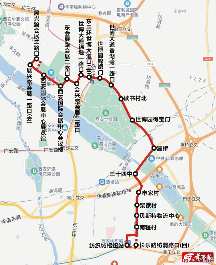 【#西安撤销调整全运2号线等7条公交线#】为优化公共资源配置,给市民提供优质的出行服务,进一步方便元朔大道、昭远门路、展兴路等沿线居民的出行,经西安市交通运输管理处批复,西安市公共交通集团有限公司将于12月16日撤销全运2号线,同时调整全运7号线并更改线路序号为297路,调整会展2号线并更改线路序号为255路;12月18日撤销全运5、10号线,同时调整全运6号线并更改线路序号为296路,更改全运9号线线路序号为299路。 一、调整全运7号线并更改序号为297路 由半坡公交调度站发车,经东三环、世博大道、欧亚大道、港兴三路、灞渭大道、港兴四路至灞渭大道港兴四路口;回程由灞渭大道港兴四路口发车,经港兴四路、全运路至港兴三路恢复原线至半坡公交调度站。线路长度16公里。首末班时间:6:30-20:00。实行无人售票空调车投币两元可刷卡票制。 线路设置站点24个:半坡公交调度站、御锦一路东口、东三环电厂西路口、浐灞汽车主题公园、东三环金桥三路口、安邸立交公交调度站、浐灞商务中心、广运潭、香湖湾地铁站、东三环世博大道口、世博大道锦堤一路口、世博大道锦堤二路口、世博大道锦堤三路口、欧亚大道世博大道口、国际港务区、欧亚大道盛槐路口(回)、欧亚大道港丰路口、双寨、兰家村、奥体中心游泳馆、奥体中心北门、全运路港兴四路口(回)、灞渭大道港兴三路口(去)、灞渭大道港兴四路口。 取消站点1个:新筑(往半坡公交调度站方向)。 增设站点3个:灞渭大道港兴三路口(去)、灞渭大道港兴四路口、欧亚大道港丰路口。 调整站点1个:奥体中心北门站调整至港兴三路路南、路北 临时取消站点1个:开往半坡公交调度站方向“国际港务区”站,暂时不具备设站条件临时取消,待具备条件后恢复设置。 二、调整会展2号线并更改序号为255路 由纺织城枢纽站发车,经柳鸣路、柳韵巷、纺渭路、柳烟路、东城大道、世博大道、会兴路、会展二路、东会展路、会展一路、展兴路至展兴路会展二路口;回程展兴路会展二路口发车,会展二路、西会展路、会展一路、东会展路、会展二路、会兴路、世博大道、东城大道、柳烟路、纺渭路、长乐东路、柳鸣路至纺织城枢纽站。线路长度11.6公里。首末班时间:6:30-20:00,实行无人售票空调车投币两元可刷卡票制。 设置站点20个:纺织城枢纽站、长乐路纺渭路口(回)、南程村、贝斯特物流中心、柴家村、申家村、三十四中、灞桥、世博园得宝门、读书村北、世博大道香湖湾一路口、世博园锦绣门、东三环世博大道口(去)、世博大道锦堤一路口、会兴路会展二路口、东会展路会展二路口、西安国际会展中心会议楼、西安国际会展中心展览馆、展兴路会展一路口(去)、展兴路会展二路口。 取消站点1个:西安国际会展中心。 增设站点6个:会兴路会展二路口、东会展路会展二路口、西安国际会展中心会议楼、西安国际会展中心展览馆、展兴路会展一路口(去)、展兴路会展二路口。 三、调整全运6号线并更改序号为296路 由港兴路东口发车,经港兴路、新筑路、元朔大道、广运潭大道、灞浦一路、昭远门路、龙朔路、龙朔南路、红旗路、未央路至未央路凤城十路口;回程由未央路、凤城十一路、修业路至红旗路恢复原线至港兴路东口,线路长度14公里。首末班时间:6:30-19:30,实行无人售票空调车投币两元可刷卡票制。 设置站点19个:港兴路东口、新筑路元朔大道口、和畅路元朔大道口、国际港务区、奥体大道元朔大道口、全运路元朔大道口(回)、灞渭大道元朔大道口、广运潭大道元朔大道口、北辰村、北三环北辰立交北、笃信路昭远门路口、昭远门路武德路口、昭远门路显庆路口、老洼滩、吕小寨、河址西北、河址西、开元路红旗路口、未央路凤城十路口。 取消站点3个:灞渭大道港兴二路口、港兴路中段、港兴路西段。 增设站点15个:新筑路元朔大道口、和畅路元朔大道口、灞渭大道元朔大道口、广运潭大道元朔大道口、北辰村、北三环北辰立交北、笃信路昭远门路口、昭远门路武德路口、昭远门路显庆路口、老洼滩、吕小寨、河址西北、河址西、开元路红旗路口、未央路凤城十路口。 调整站点1个:国际港务区(往港兴路东口方向)调整至十字东路南。 四、全运9号线更改序号为299路,线路走向、首末班时间及票价不变 全运9号线线路走向不变,序号调整为299路,由港兴路东口发车,经港兴路、港务大道、港丰路、欧亚大道、港兴二路、奥体大道、展盛路、浐灞河隧道、欧亚四路、永淳路、凤城八路至行政中心。线路长度15.5公里,首末班时间:6:30-19:30。 设置站点18个:郝家村(去)、港兴路东口(回)、陆东村、港务区管委会南门、和祥路港丰路口、和顺路港丰路口、欧亚大道港丰路口、双寨、奥体大道港兴二路口、奥体大道港丰路口、奥体大道元朔大道口、永淳路东口、景云路永淳路口、太华路永淳路口、渭滨路凤城八路口、张家堡新区、市中医医院、行政中心。 新增站点2个:双寨(往港兴路东口方向)、奥体大道元朔大道口(往行政中心方向)。华商报记者 赵瑞利