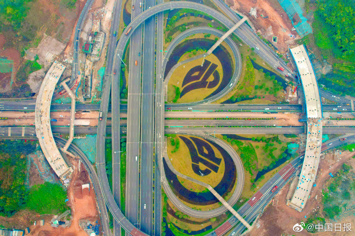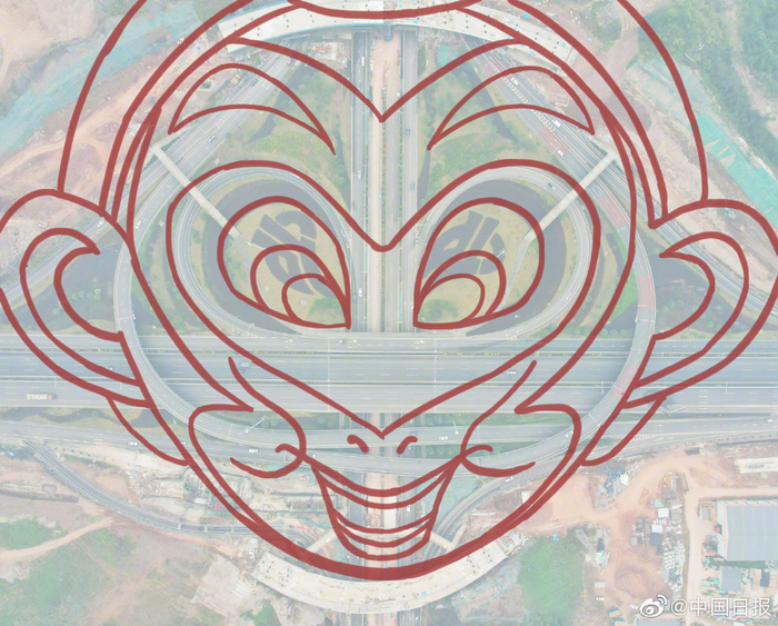 【#重庆一立交酷似悟空脸走红#】继“猫头鹰立交”之后,近日,“8D魔幻城市”重庆又有座“悟空立交”走红网络。西部(重庆)科学城科学大道的一期新建项目“青龙咀立交桥东西双向辅道桥”顺利贯通,与青龙咀立交形成了一幅有趣的画面,酷似猴脸。立交设计负责人龚霞表示,网友口中的“悟空立交”在专业上叫“蝶形立交”。之前并没有觉得它像“悟空”,直到近日辅道桥贯通,才让“悟空立交”的“额头”和“下巴”线条显现出来。(记者 邓蕊 谭英姿)