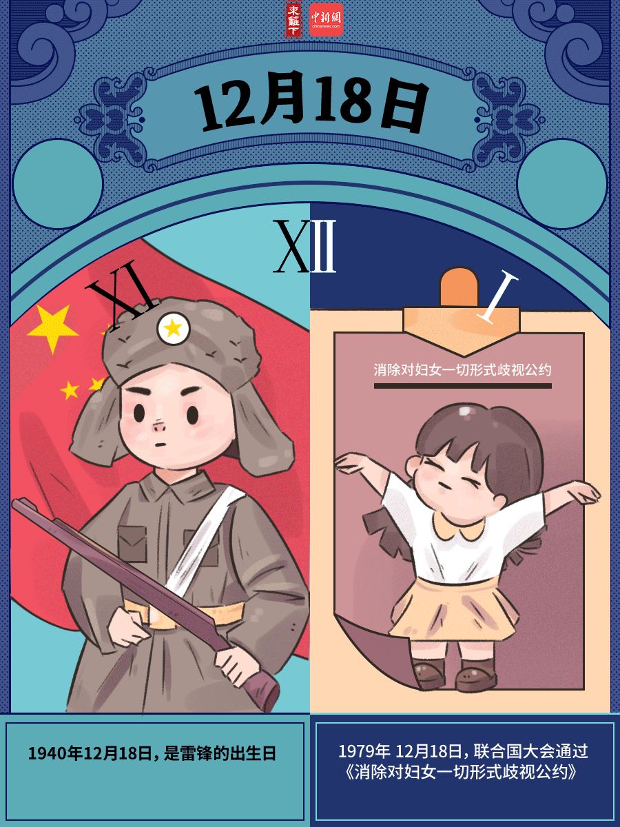 【历史上的12月18日发生过什么大事?】#一张漫画涨知识# 历史上的12月18日有什么特别之处?1940年12月18日,是雷锋的出生日。1979年12月18日,联合国大会通过《消除对妇女一切形式歧视公约》。12月18日年年有,哪一年的今天对你有特殊意义?有今天生日的朋友吗?这一天你们打算如何度过呢?留言区分享一下吧!