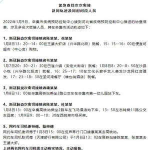 河北辛集市公布6名次密接活动轨迹,辛集市急寻2名网约车司机