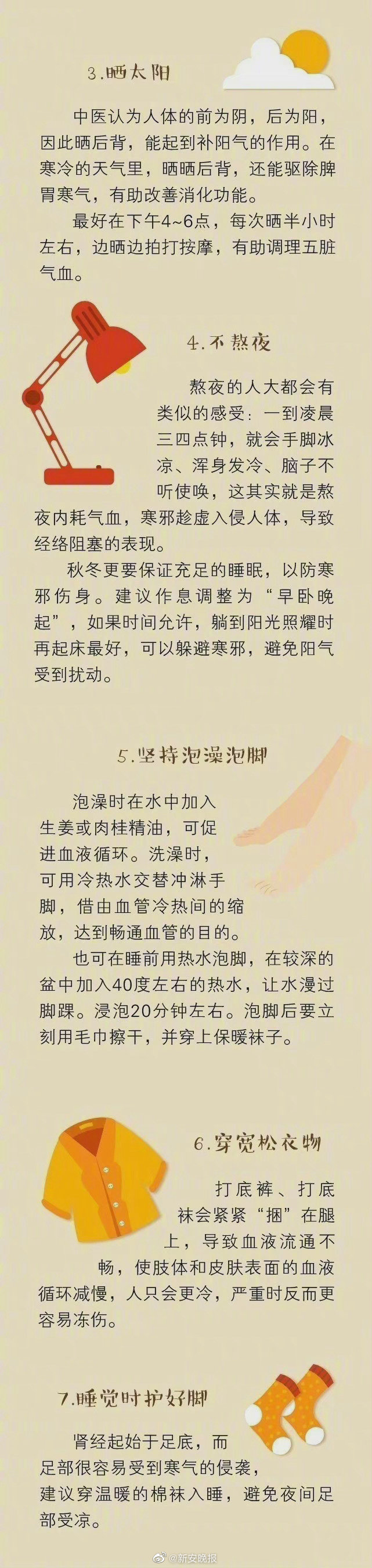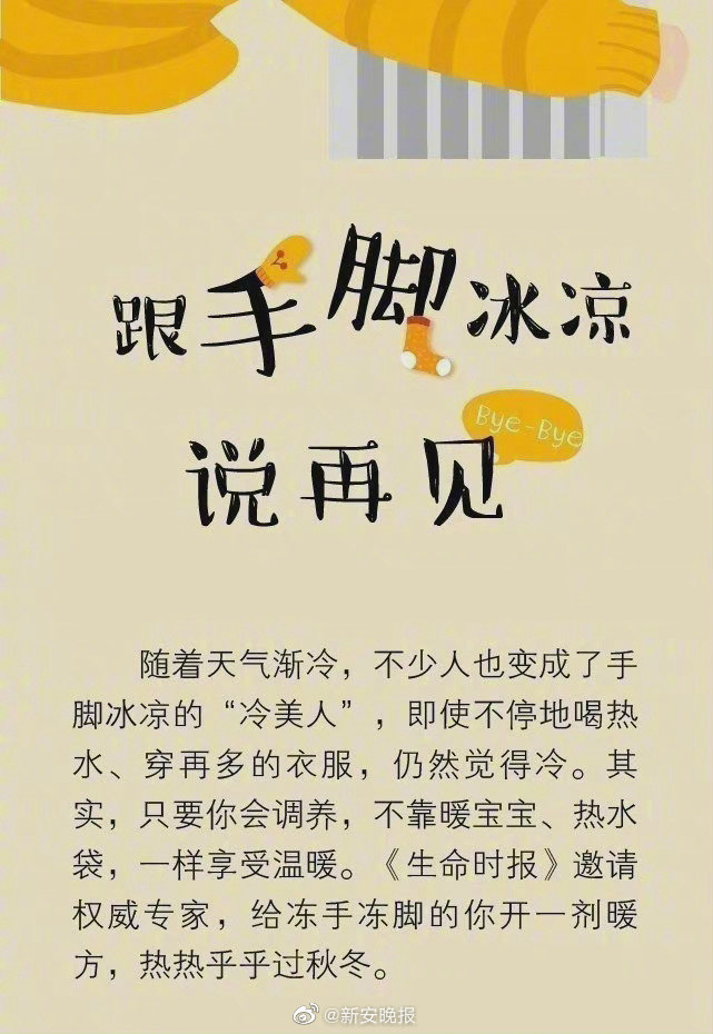 【手脚冰凉的人有救了!学7招过个温暖的冬天】对手脚冰凉的人来说,冬天是最难熬的季节。即使不停喝热水、添衣物,仍觉得寒从脚起。其实只要你会调养,不靠暖宝宝、热水袋,一样享受温暖。@生命时报 邀请权威专家,教#冻手冻脚的人过个暖冬#,扛过寒冷的季节。戳图↓↓收获温暖!