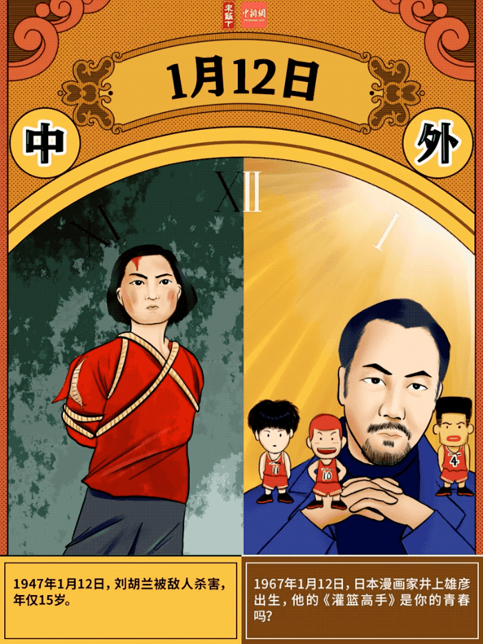 #刘胡兰牺牲75周年#【历史上的1月10日丨75年前,15岁的她倒在敌人屠刀下……】#一张漫画涨知识# 1947年1月12日,刘胡兰被敌人杀害,年仅15岁。1967年1月12日,日本漫画家井上雄彦出生,他的《灌篮高手》是你的青春吗?哪一年的今天对你有特殊意义?发生过什么难忘的事?留言分享一下吧!