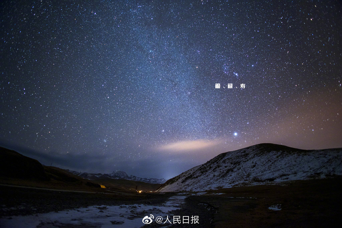 【一起许愿!#福禄寿三星高清大图#来了】今晚,“猎户三星”高悬在南方天空中,三颗明亮的恒星排成一条直线。中国古代民间将其称为福、禄、寿三星,寓意“幸福美满、吉祥富贵、健康长寿”。#川西高原的星空有多美#?戳图欣赏↓↓许下虎年新春愿望!(摄影/戴建峰)