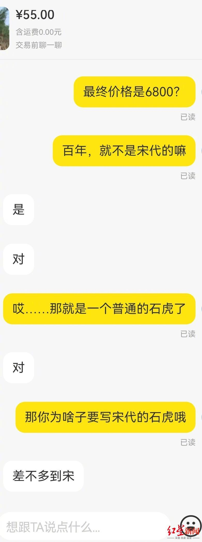 【#闲鱼有卖家卖疑似文物宋代石虎# 闲鱼:合法情况下可交易买卖】#闲鱼回应有卖家在平台售卖文物# 日前,有网友向红星新闻记者爆料,称在专门从事二手物品买卖的“闲鱼”APP上,有人在出售文物“宋代石虎”。红星新闻记者通过闲鱼APP搜索“宋代石虎”,页面上随即出现了形态各异的相关物品,售价低则51元,高则上万元,卖家所在地也各不相同。 随手点开一个写着“宋代石虎 青石”的产品,页面标价55元,经询问卖家后得知,该物件儿的实际卖价是6800元。在询问该物件儿是否真为宋代石虎后,卖家先是回复其历史有“百年吧”,后又说“差不多到宋”,承认所售并非宋代文物。 对此,闲鱼如何回应?1月19日,红星新闻记者联系上闲鱼平台相关工作人员,“闲鱼平台是个人对个人的交易平台,关于文物收藏类商品,在合法的情况下都是可以进行交易买卖的。”对方表示,闲鱼平台是经过大数据和人工进行审核、核实和排查的,如果发现了卖家违反法律规定,将会对所售商品进行下架处理,严重情况将会进行封号处理。 对于页面上卖家明确标注为宋代,但私下却表示并非宋代的商品,该工作人员表示,“如果卖家承认是赝品,买家可以把相关截图提交给我们工作人员,或者点击对方主页右上角进行举报,将会有人工进行审核,经过核实,会对售卖的商品进行下架或封号处理。” 所以平台可以买卖交易文物吗?该工作人员回复红星新闻记者,文物收藏品、个人闲置的商品可以进行交易。“目前咱们工作人员的确无法区分到底是个人闲置还是商家赝品,后期还需要我们平台完善审核制度,加大对发布的规范。” 但如果出现馆藏文物,或者卖家称所售物件儿是从文物发掘区内获得,该工作人员表示,“这个是国家财产的文物,如果拿到闲鱼卖,本身就存在违法行为了。我们也会去排查所有卖家所发布的闲置商品的情况,也会有系统和人工进行审核。”同时他表示,“针对于卖家出售的闲置商品,违反了相关法律,平台会接受监督,也会配合执法机构。(对于)违法的卖家进行买卖的商品,平台会进行严厉打击。”
