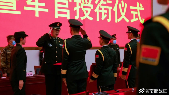 【欢迎你们,少尉排长!】自新的军官制度实行以来,历经6个月的“岗前集训”与“学员培养”,首批被授予“少尉”军衔的本科毕业军官,迎来他们人生中的高光时刻!日前,陆军第74集团军 “红一团”部队组织干部大会暨军官授衔仪式,旅领导宣读授衔、任职命令后,随即为新授衔学员颁发军衔命令状。(李威 刘洵 阳士教)