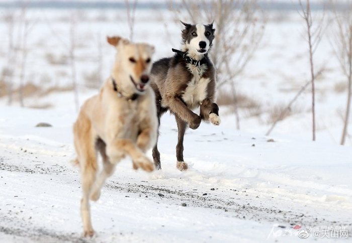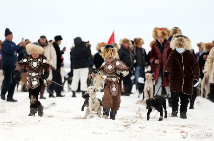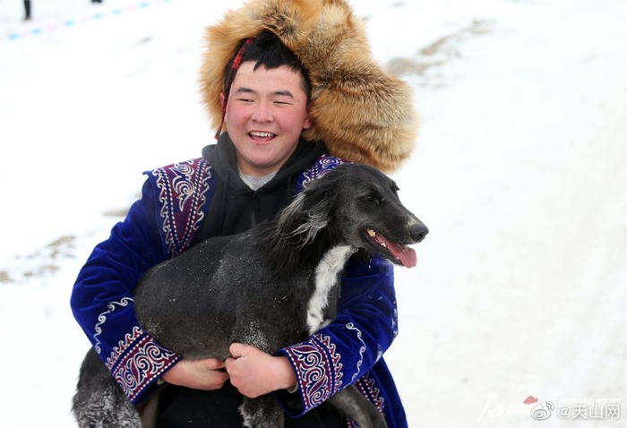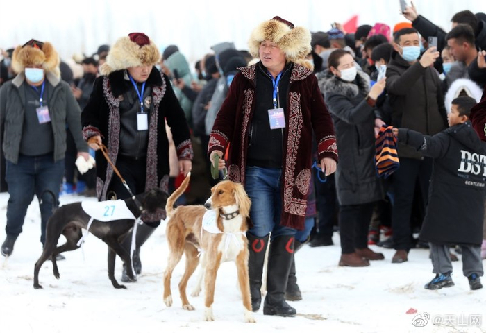 #我在新疆迎冬奥# 【新疆木垒:速度赛狗 喜迎冬奥】2月2日,新疆木垒哈萨克自治县首届塔兹猎犬3000米速度赛在新户镇三畦村举行。来自全疆10支代表队的42条猎犬参加了此次比赛,吸引了众多游客前来观看。石榴云/新疆日报记者 李瑞 摄