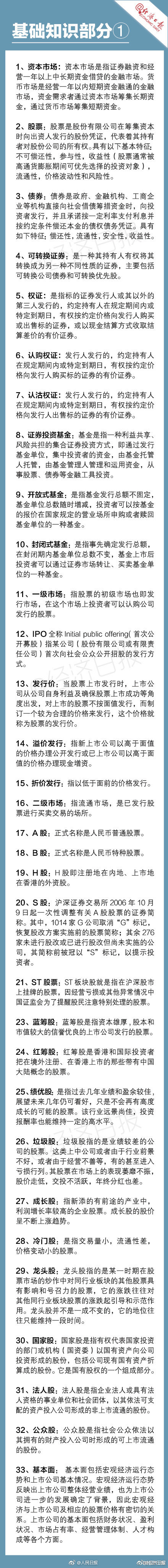 #基金 股票#【干货来了!179个必备金融名词解释】想投资理财,却总被各种金融名词搞得晕头转向?有些词汇感觉明明知道,但就是说不出来准确含义?别纠结啦!179个必备金融名词解释在手,以后不再发愁。开放式基金、溢价发行、基本面、再贴现率…从基础知识到行情术语都有↓↓赶快转发收藏吧,有用!@经济日报