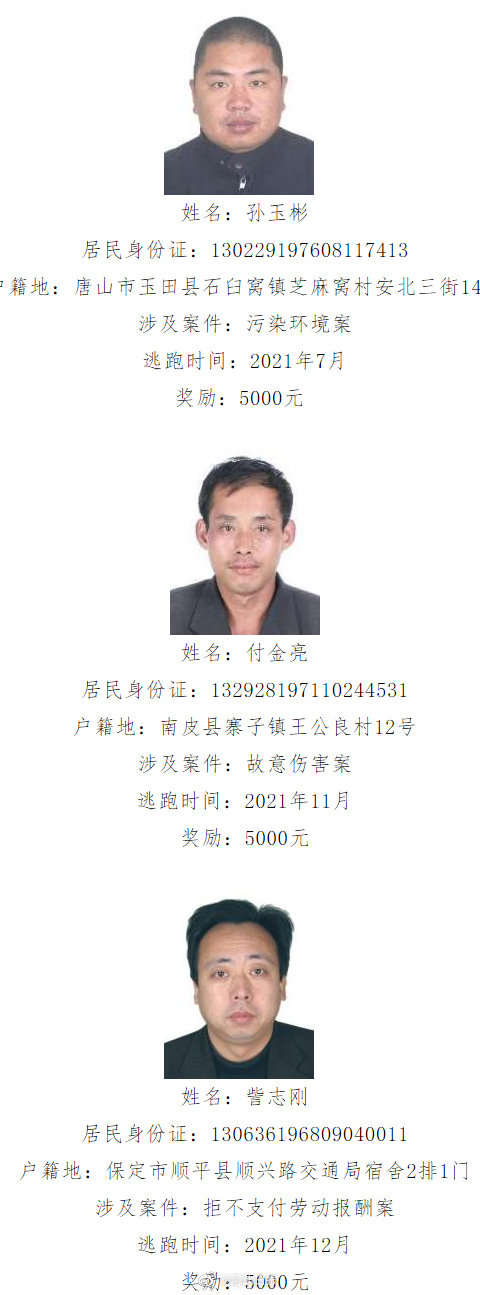 最高奖励10000元!河北一地警方悬赏通缉重点在逃人员