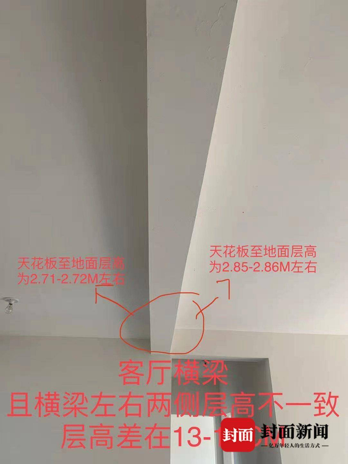 起初,她还有些不相信,后来到了收房的时候,她才发现,业主们所反映的情况,并非空穴来风。她还注意到,自家的卧室、客厅里,突然多了一根承重梁,“不能敲掉,也不能遮住,就像水桶的木板一样,因为一个短板直接影响了房子的层高。”