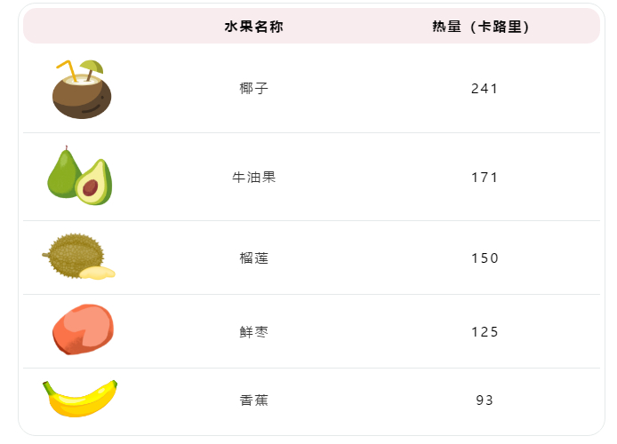 只吃水果,是很多人都会陷入的减肥误区,所以大部分人都失败了。以为水果热量低就放开了吃。但请注意,有些高热量水果的热量甚至超过了米饭(以下为每100克可食部热量)。