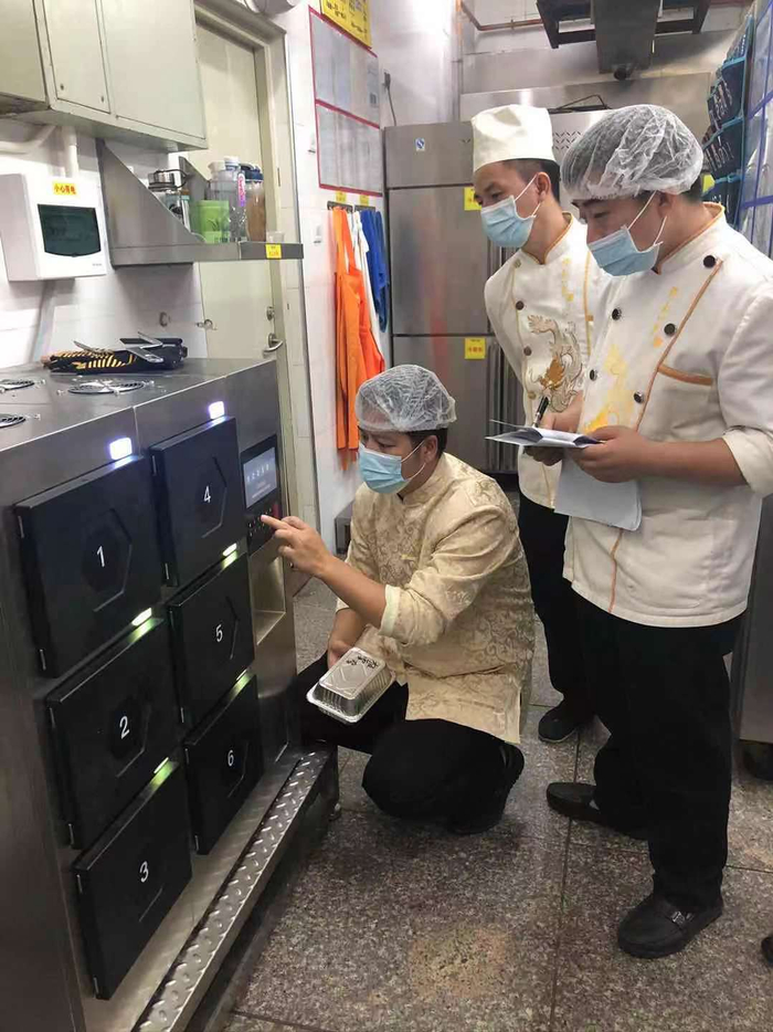 “在深圳,厨师的薪资普遍在7000元以上,优秀一些的要10000元以上才能留住人。”创业31年的餐饮老将缪良感到,必须要进行效率革命了。他开始着力改造后厨,深圳12家门店全部引进了先进的库盒智能炒菜机负责炒制外卖菜品。
