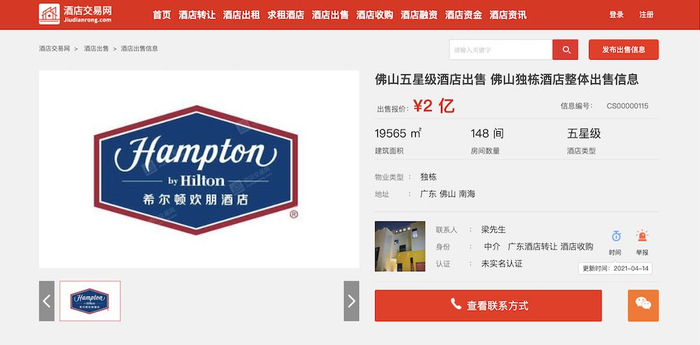 第一财经记者查询酒店交易网等后了解到,目前上海豫园万丽酒店依然挂网出售,售价为21亿元,名称改为“上海黄浦区五星酒店出售”,项目配图依然为上海豫园万丽酒店,上海豫园万丽酒店在2007年8月开业,客房总数340间(套),由上海豫园大酒店有限公司拥有、万豪酒店集团进行管理。其余上述酒店项目暂时“下架”,查不到具体信息。