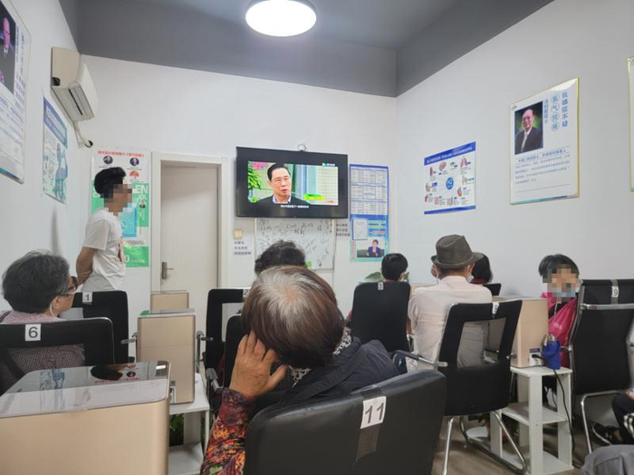 记者来到店里是在下午3点左右,有10位老人在聚精会神地看着显示器上播出的视频,他们的鼻孔前都卡着一根呼吸管,像眼镜架一样固定在耳朵上,再连接到旁边桌子上的机器。老人们相距很近,由于戴着呼吸管,口罩只好拉到下巴处。他们注视着显示器,视频中的人正操着一口台湾腔讲:“吸氢气的同时还要喝氢水,两者不可偏废”“沉默是金,吸氢气的时候千万不能讲话”。电视上的目录显示,共有十几个类似的讲解“吸氢气”方法和功能的视频。吸氢过程中还安排了老顾客现身说法,讲述自己的“巨大变化”。
