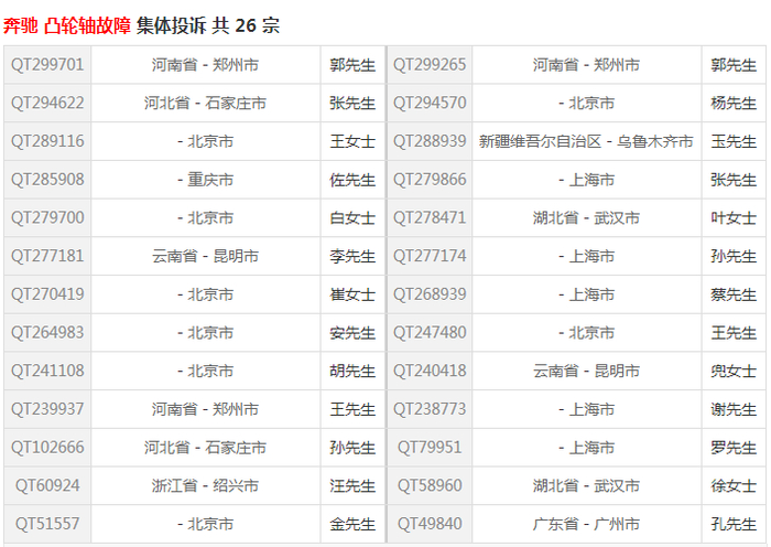 原标题:【汽车投诉】奔驰C级进气凸轮轴磨损严重 车主:厂家为何区别对待 来源:中国网
