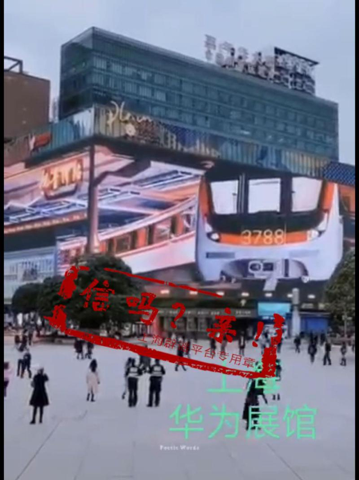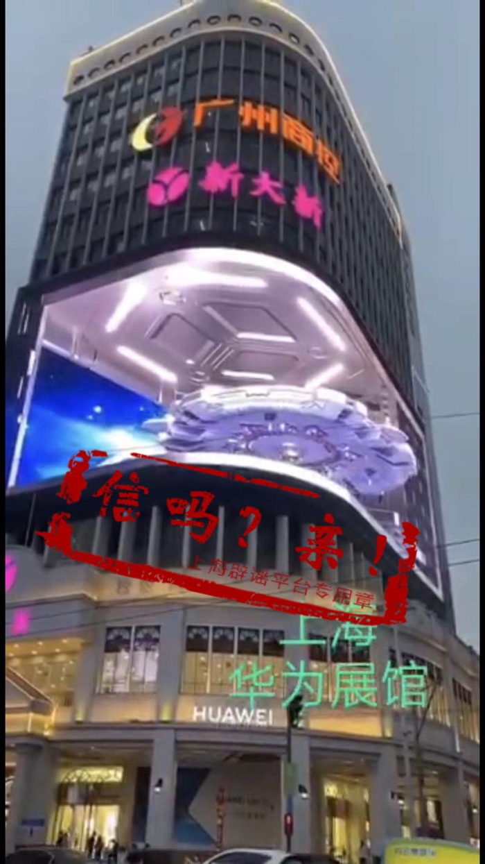 原标题:“上海华为展馆”亮相裸眼3D巨幕LED?屏幕是真的,但地方在……