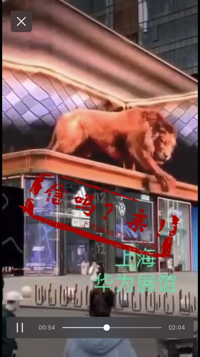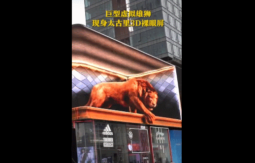 例如,巨型雄狮先用爪子试探,然后从屏幕中一跃而下的场景,是拍自成都太古里的裸眼3D屏。画面栩栩如生,看起来爪子都伸到下面店铺里了,几个路人被吓到;