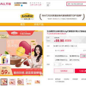 目前,此款产品在天猫五谷磨房官方旗舰店仍在售,代言人为影视明星关晓彤。