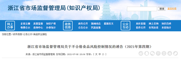 原标题:浙江省市场监督管理局发布不合格猪头肉(肉制品)风险控制情况