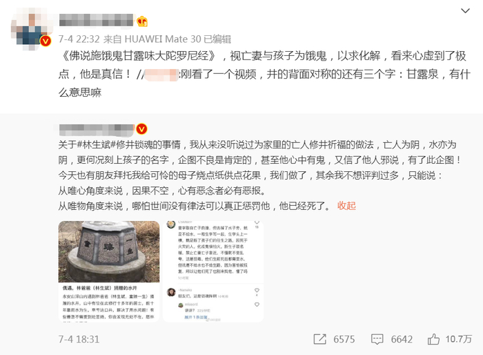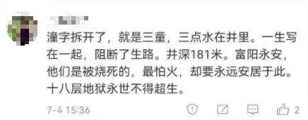 其实,即使按照最通俗的解读,也不可能扯到“镇魂”上。打井一直是积功德、纪念亡人的常见做法,民间根本没有造井锁魂的说法。井的背面是“甘露泉”三个字,甘露在梵语中有涅槃之意,且“露”和“泉”都是水。八角井是很常见的水井形状,打造起来比圆口井省工。莲花是佛教特有的吉祥物。7月7日,寺庙方回应:林生斌4年前出资捐井,井的样式及莲花图案均为寺方选择。“童臻一生”倒过来念是“生一臻童”而不是“一生镇童”。这口井上还有林生斌自己的名字“生”,难道他连自己也要一起镇?可见,上述种种说法实在站不住脚,听起来就离谱,却在网上广泛传播热议。