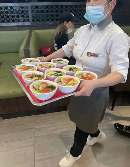 为解决受困群众无法正常返回、食宿没有着落的问题,7月20日晚到7月21日上午,海底捞郑州大观国贸店除为400余位被困市民提供了留宿休息、提供早午餐外,值班经理还带领深夜值班员工,为滞留在门店所在商厦的300多名市民送去了粥、馒头、花卷等餐食。