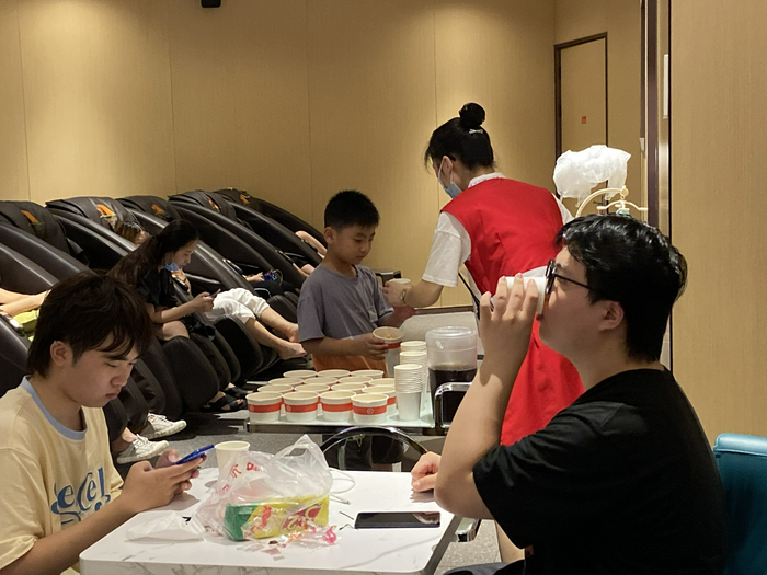 7月21日,海底捞火锅新乡宝龙所在商场外围积水严重,门店为80余受困人员开辟休息场所供其留宿,并拿出门店存库的所有毛毯、围裙等物品,免费供应热饮和暖心早餐。7月22日,见仍有20余人未能顺利撤离,门店负责人继续组织员工为受困人员提供免费午餐,并通过物业联系政府抢险救援人员,设法帮助受困人员安全撤离。