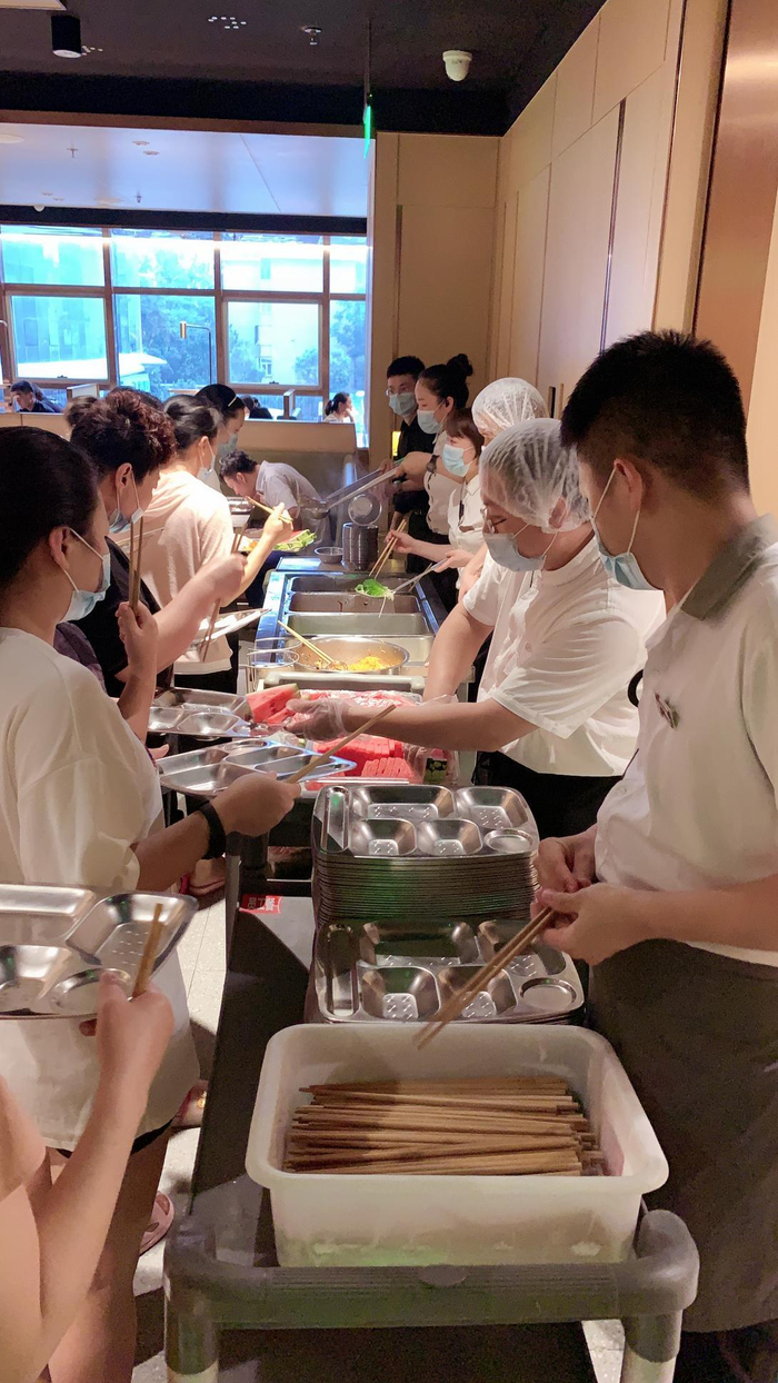 海底捞火锅郑州商鼎路店在门店停水无法正常营业情况下,克服困难,专门开辟受困群众接待区域。从7月20日晚到7月21日下午,持续救助受困群众300多人,供应内部员工餐,解决受困群众就餐需求。门店将应周边居民需求,继续保持免费开放,随时提供救助。