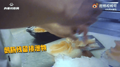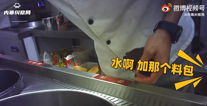 暗访视频中显示,该门店使用的黄喉已发臭,但处理的方式就是“冲洗三个小时”,“闻不到臭就可以用了”。同时后厨工作人员还透露,黄喉、牛百叶都是经过“药水泡的”。鹅肠里面则残留着排泄物,工作人员称“正常”,甚至称“不要说那么直接,那个叫‘调料’”。