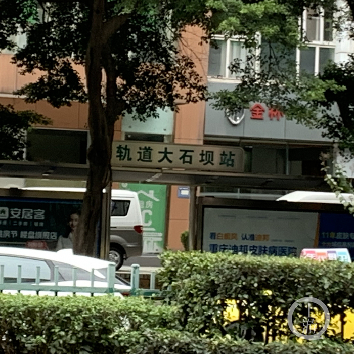 当天,记者登上一辆181线路公交车前往实地查看,这两个站的站名确实是大庆村站与轨道大石坝站。