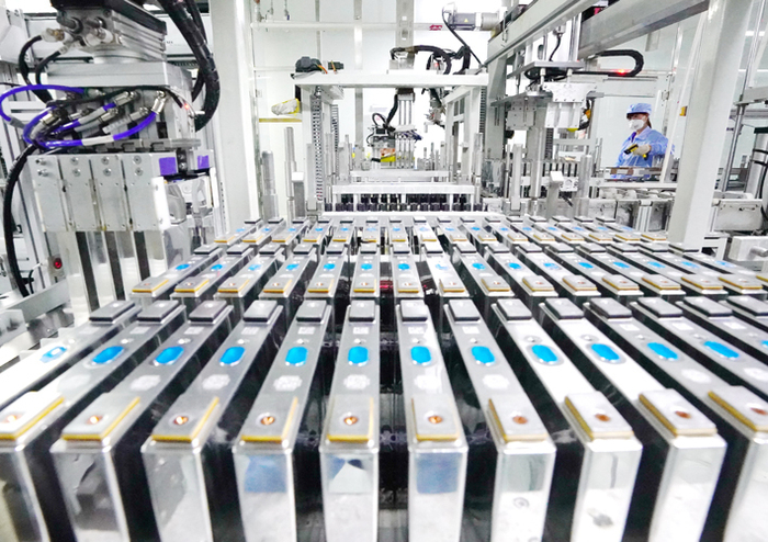 河北省唐山市一家锂电池企业的工人在生产线上工作 新华社图