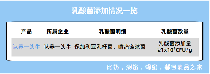 ●认养一头牛只添加了2种普通发酵乳酸菌