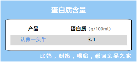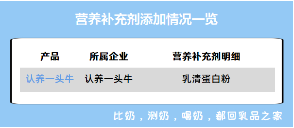 ●认养一头牛只添加了一种提高蛋白质含量的乳清蛋白粉