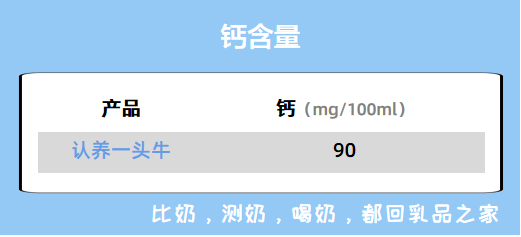 ●认养一头牛的钙含量不算高