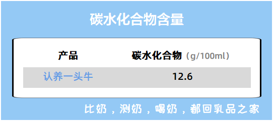 认养一头牛碳水化合物含量偏高,说明添加糖量偏高