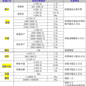 调查发现,大部分快递公司的保价费按照消费者寄递的物品声明价值划分收费区间,相对低一些的声明价值实行定额保价费,而声明价值较高的实行比例保价费率。如韵达、申通、百世3家快递都是实行比例保价费率。