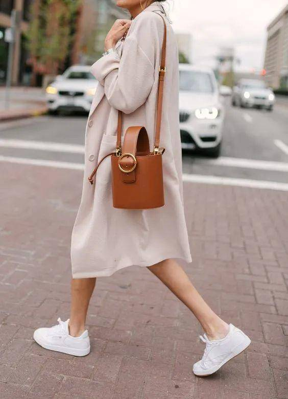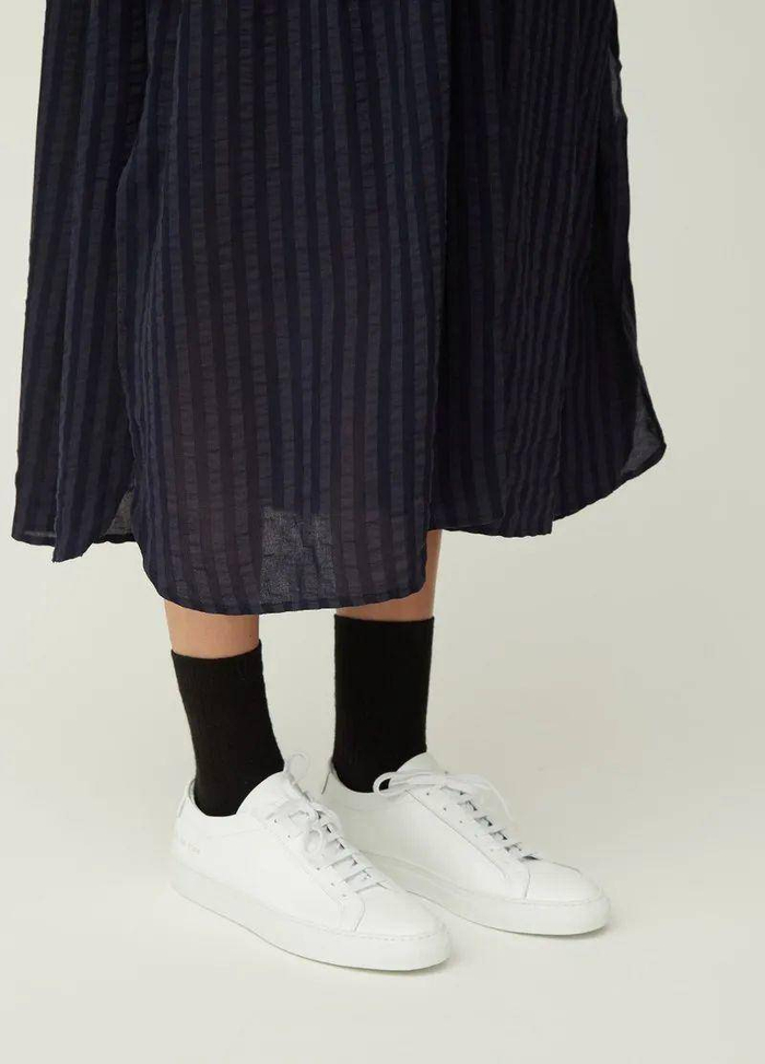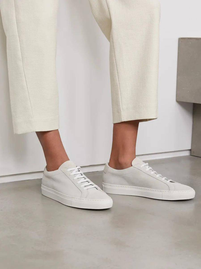 Common Projects的小白鞋还能与裙装完美结合,为裙子增添活力,穿着裙子也能实现跑步和快走自由。