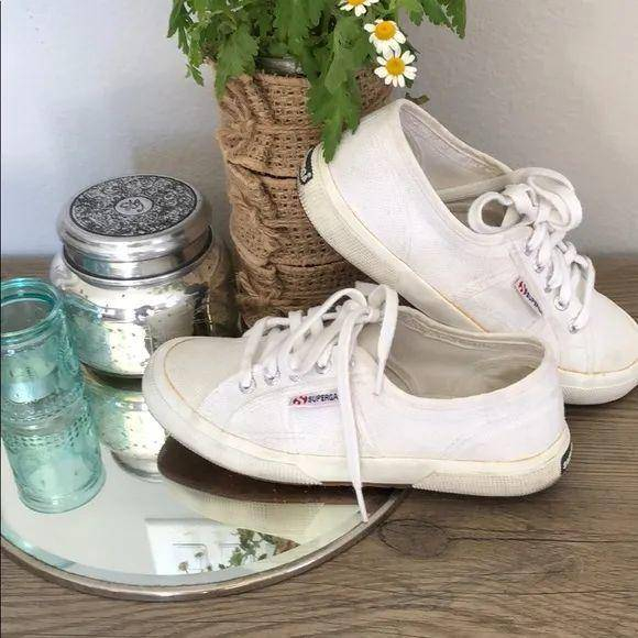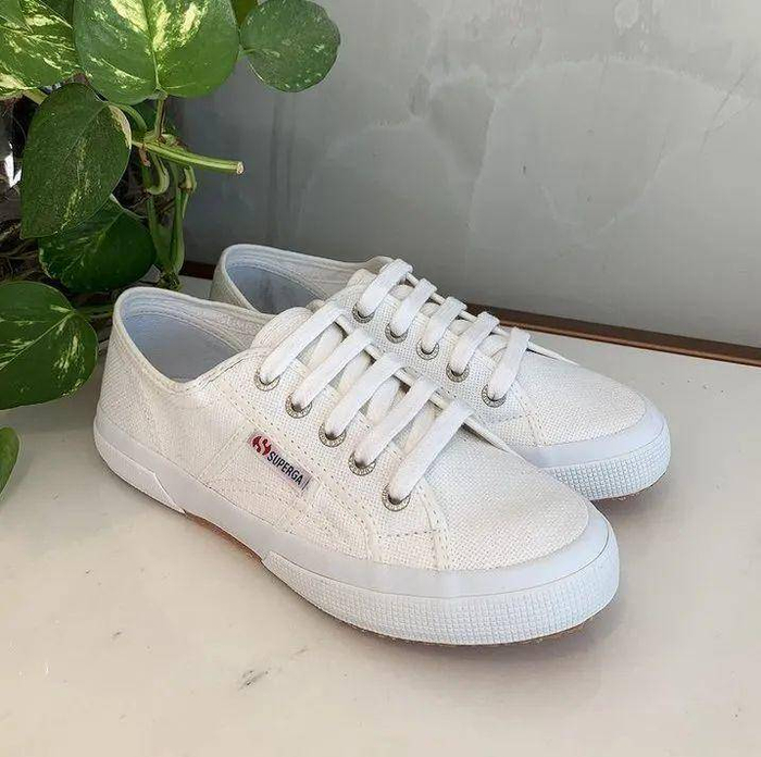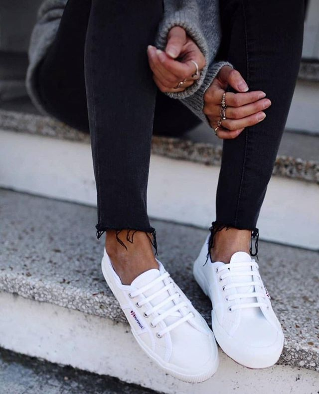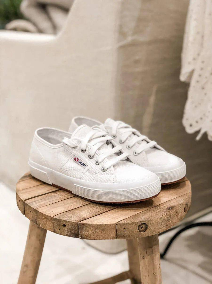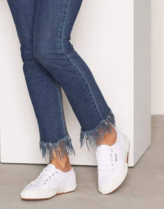 在白净的鞋面上加以Superga独特的logo标签做装饰,避免了单调,又在不经意之间多了一份时髦个性。许多女孩们都会拿它搭配各式各样的牛仔裤,让小白鞋作为自己的时尚宣言,穿出属于自己的风格。