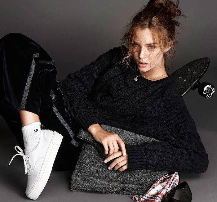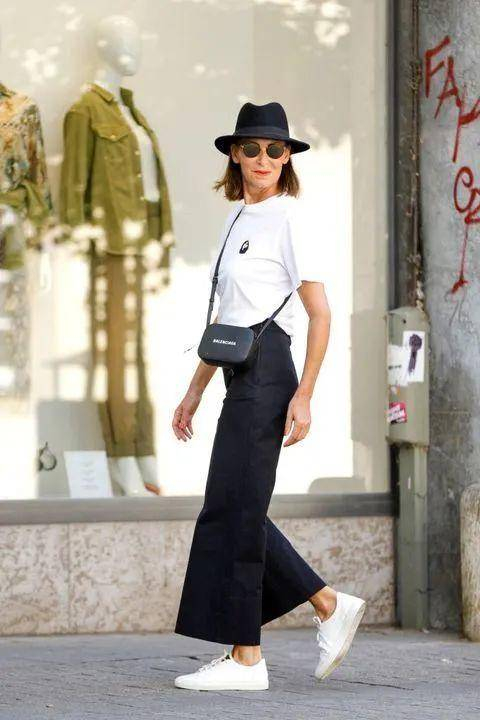 女孩们还会在穿基础色的时候用Common Projects小白鞋来做搭配,黑白分明的风格怎么穿都不会出错,气场利落而又不失亮点。
