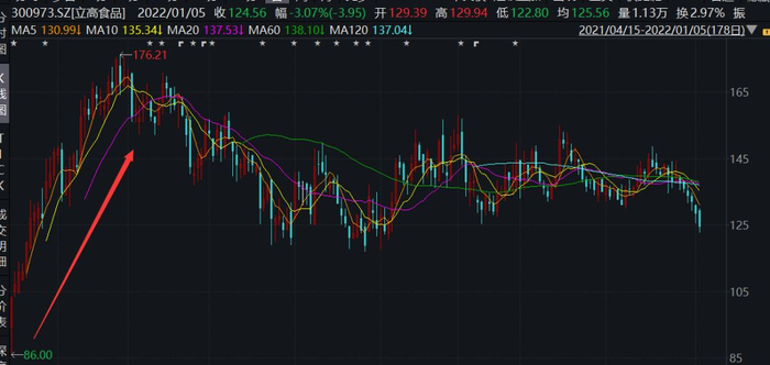 下游端生意火爆,让立高食品这个看似不起眼,业绩却告诉增长的公司,一上市就得到了投资者的认同。上市仅一个月,就从IPO定价28.28元上涨到176.21元,最高上涨523%。