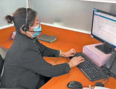 12378银行保险消费者投诉维权热线北京分中心话务员江莎在接听消费者来电。人民日报记者 赵展慧摄