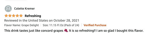 以北美市场为例,在过去很长时间几乎被高糖饮品填满,当元气森林走向美国市场,这片等待革新的饮料红海也刮起了饮品无糖化的健康浪潮。很多消费者在社交媒体留言为元气森林点赞。一名为Colette消费者这样写道:“这个饮料(葡萄味)喝上去就像在吃巨峰葡萄,非常清爽!我觉得我买对了。”另一位名为Ellsworth的消费者反馈称:“我从来没吃过来自中国的白桃,但这个饮料(白桃味)冰镇后搭配下午时光简直完美。我爱上它了!”