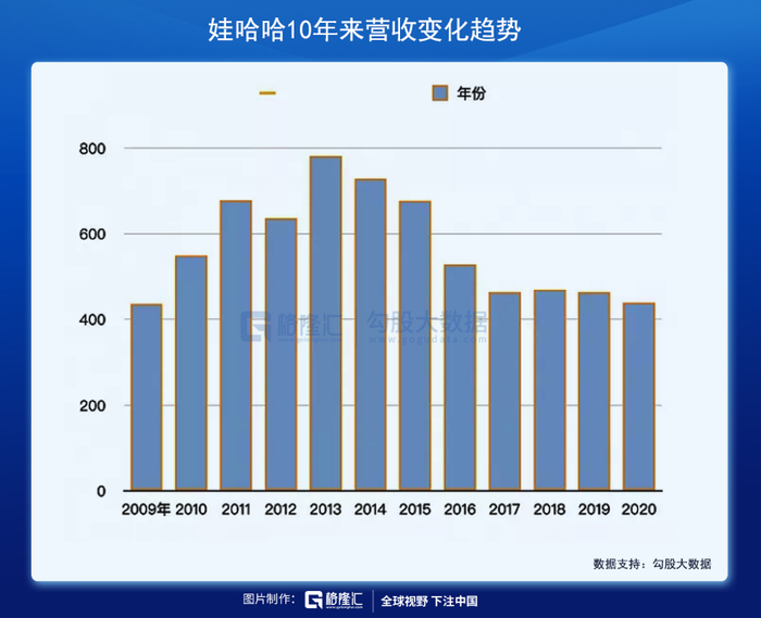 公开资料显示,自2013年巅峰以后,娃哈哈的业绩逐年下滑,2020年,娃哈哈营收缩减至440亿元,较2013年(783亿元)下滑超40%,创下近十年新低。全国工商联发布的2021中国民营企业500强榜中,娃哈哈仅排在227名。