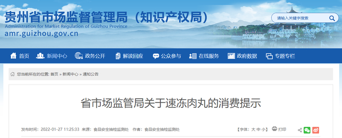 原标题:贵州省市场监管局发布关于速冻肉丸的消费提示